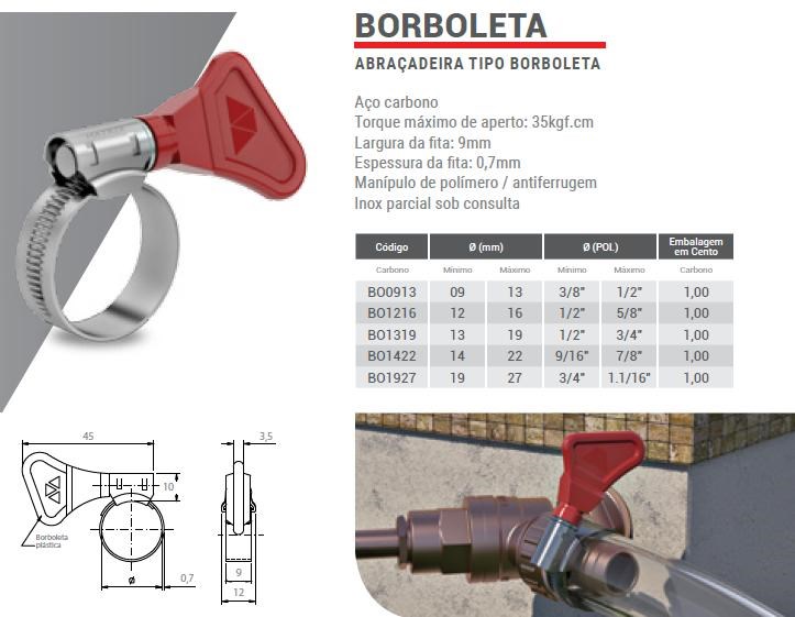 ABRAZADERA MARIPOSA SIN FIN EN ACERO CARBONO DE 9 A 13MM