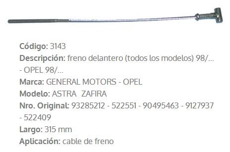 CABLE DE FRENO CHEVROLET VECTRA 1997 315MM