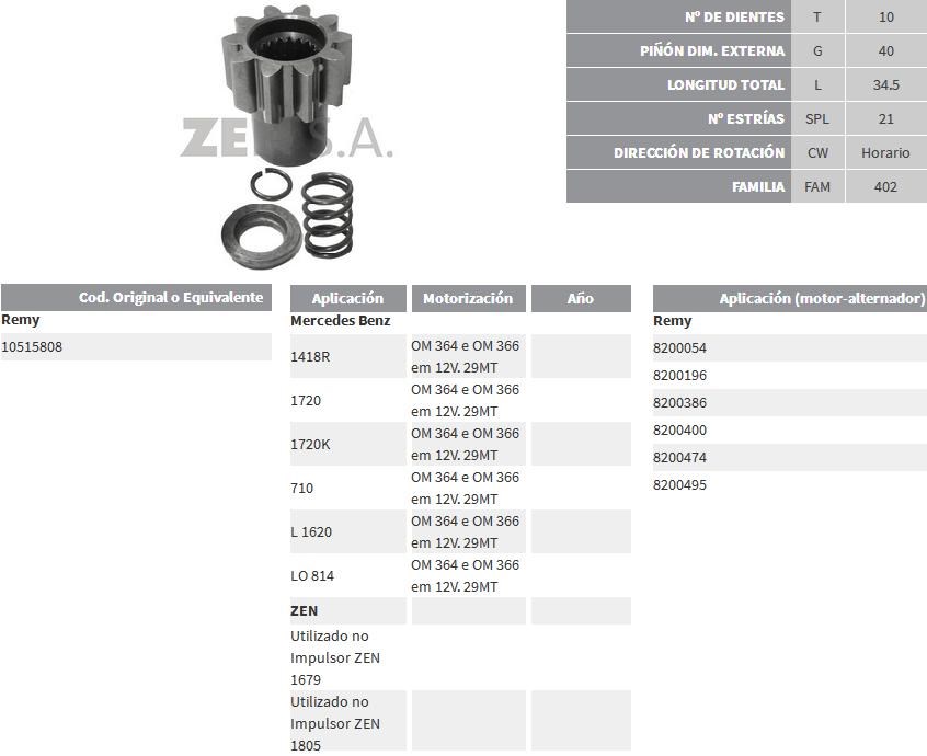 PIÑON DE ARRANQUE 12V TIPO DELCO REMY (ZEN)