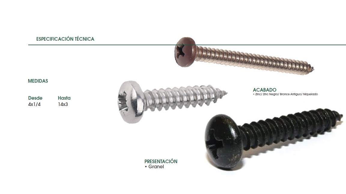 TORNILLO CABEZA PAN PHS ROSCA CHAPA 6X3/4 NIQUEL.(3,5MM)