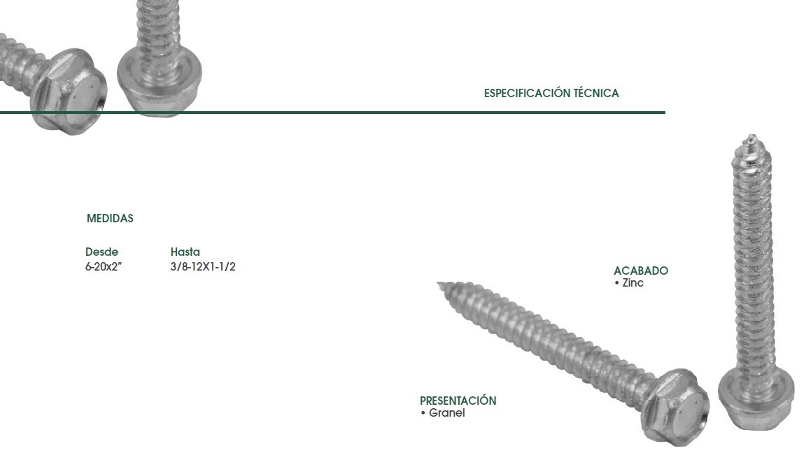 TORNILLO PARA CHAPA C/HEXAG.S/ARANDELA 5/16X1.1/2 ZINCADO